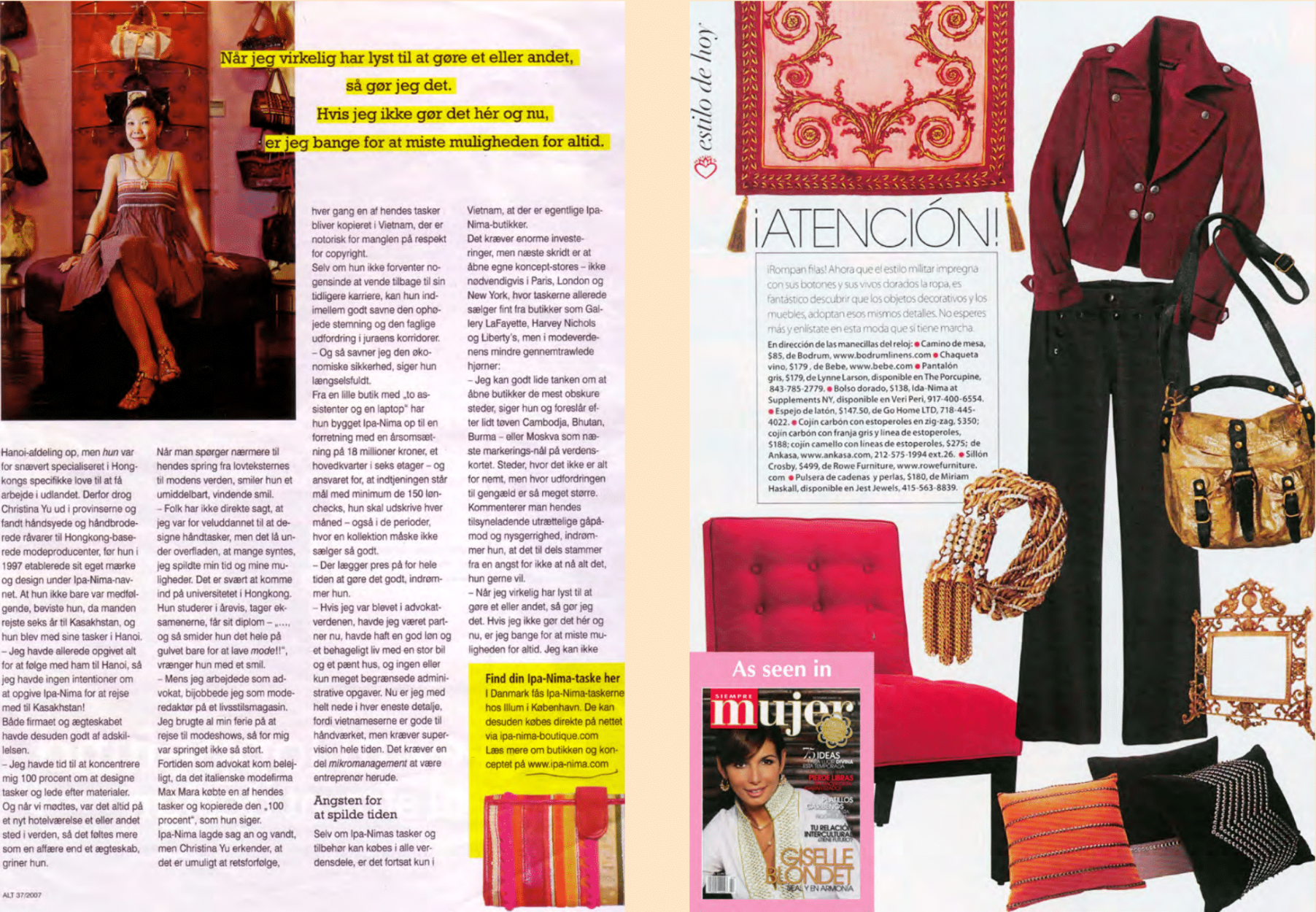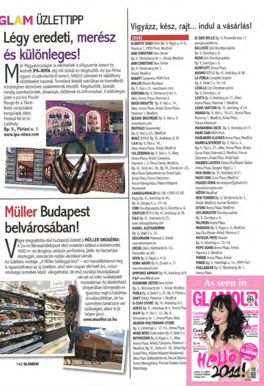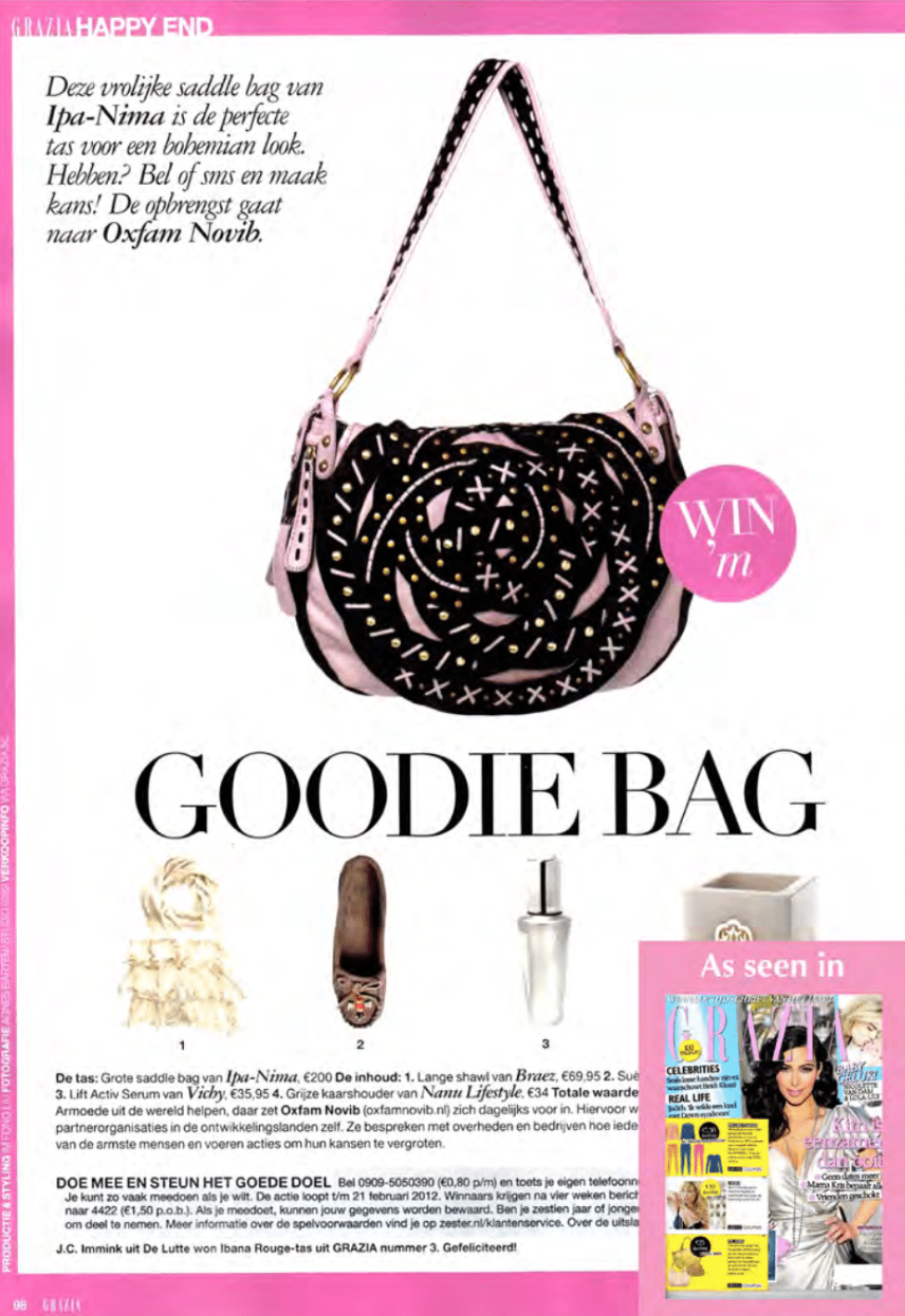 IPA-NIMA was featured in Celebrity magazine, a popular publication about people, fashion and beauty. The brand got a double page spread interview of designer Christina YU, and her top-best seller bags of the moment got featured in the section Trend.