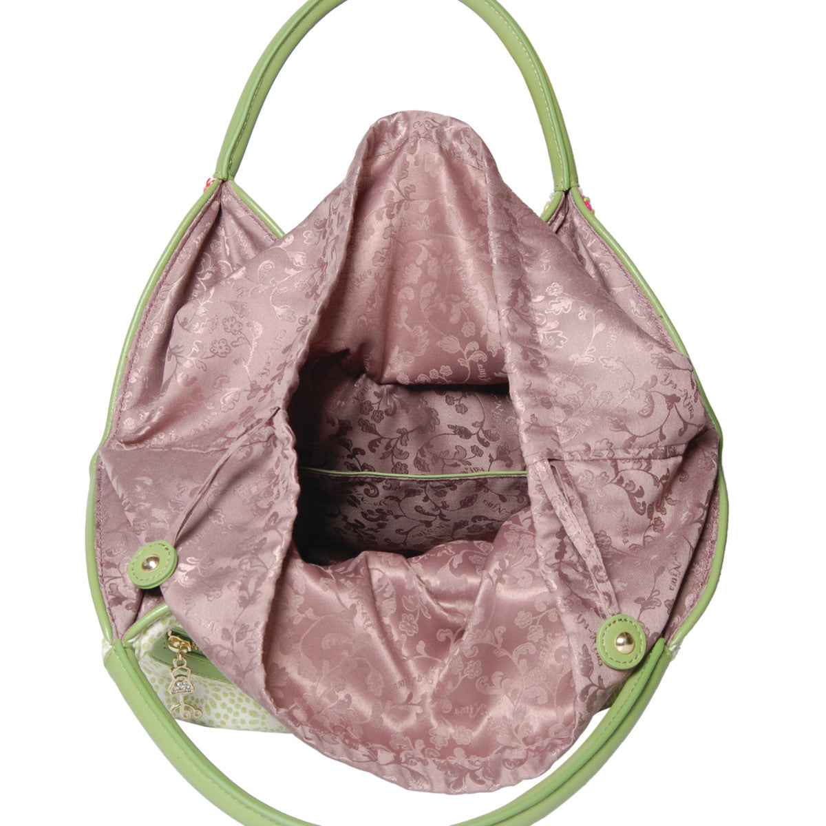 We are well known for our embellishment and this bucket has it all. What makes it interesting is the shiny buttons contrasts with the jacquard fabric. Each button is sewn by hand with cotton thread and with hand- embroidery . The handles and trims are all made in real leather, complete with slip pocket at the back to separate all your valuables.