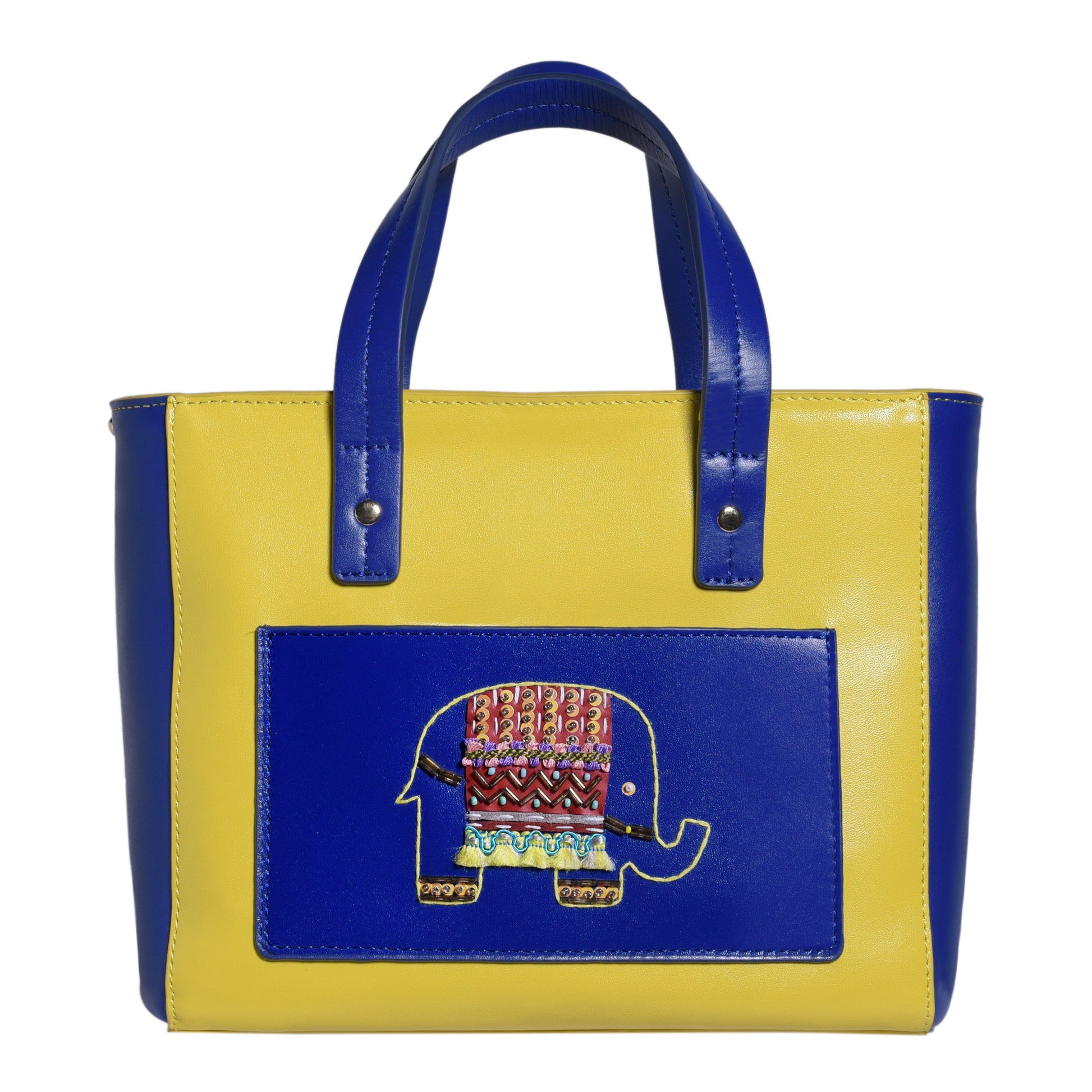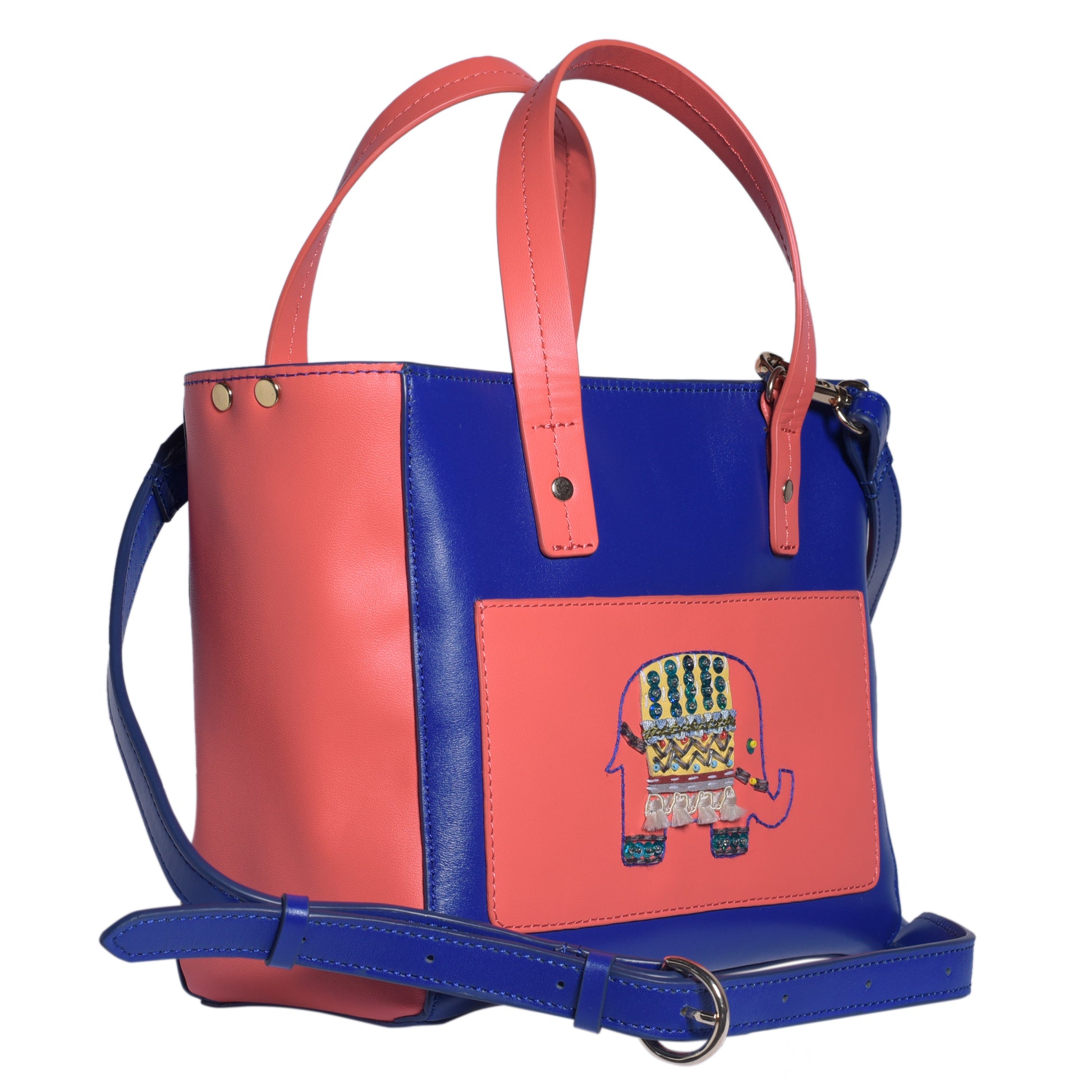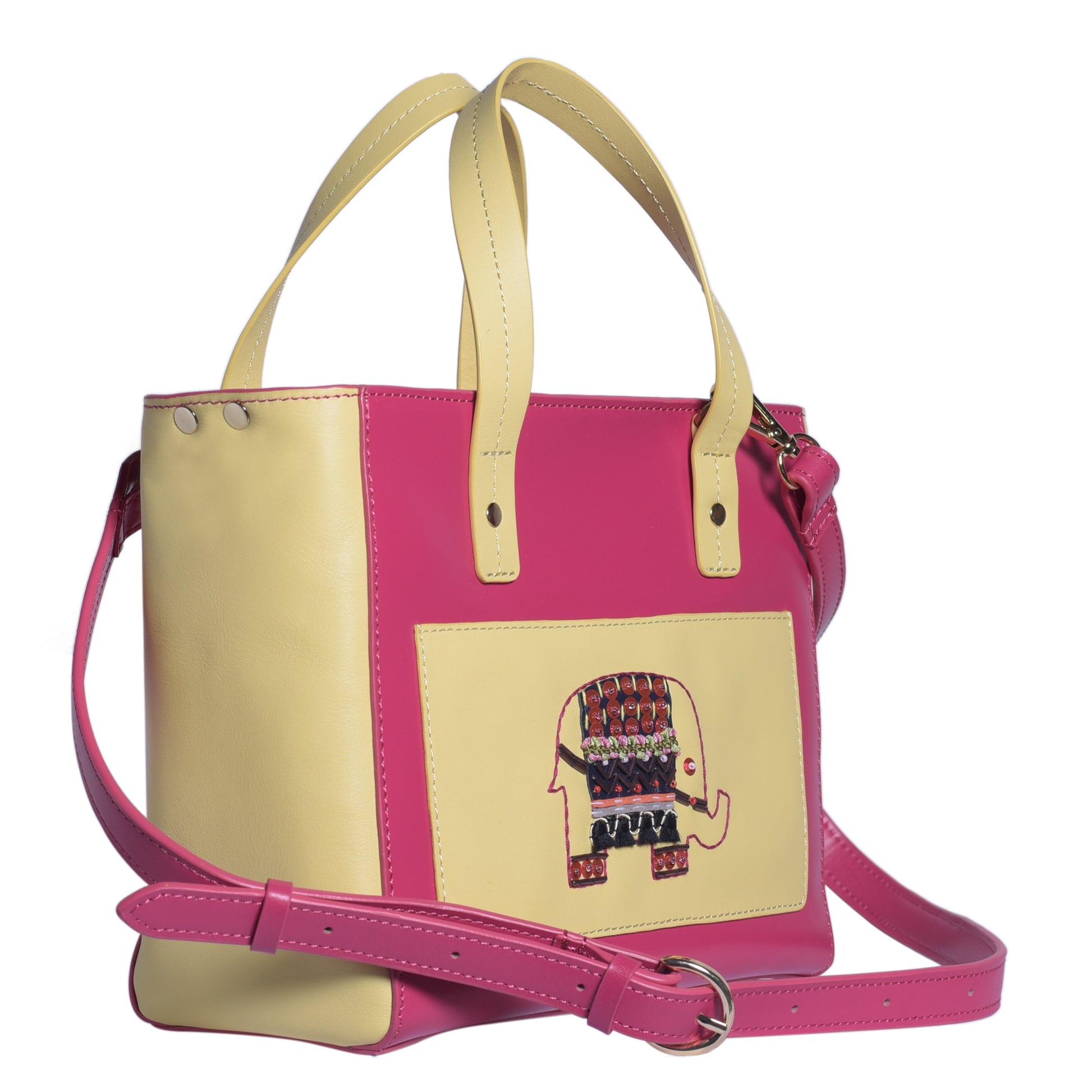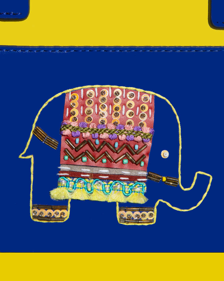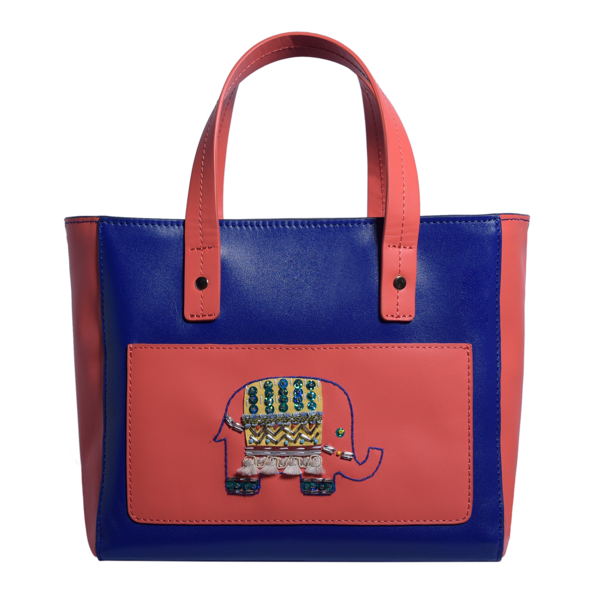 Inspired by decorative elephants seen in Rajasthan, our Ekanta boxy tote is a great addition to your spring wardrobe. Vibrant with a whimsical twist, it is eye-catching, functional yet compact. Front slip pocket allows easy access to phone and back zipper pocket helps to keep small items like keys and lipsticks apart. The main compartments are roomy enough for sunglasses, and even a mini I PAD. The zipper puller comes with a cute mini elephant motif. Detachable (adjustable) crossbody handle Included.