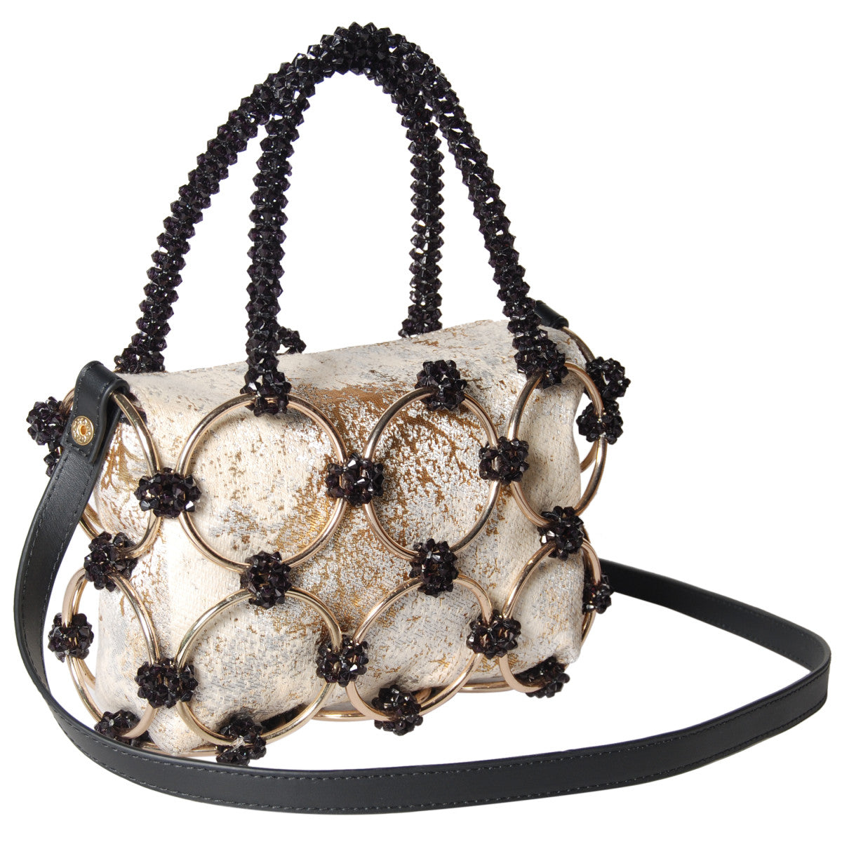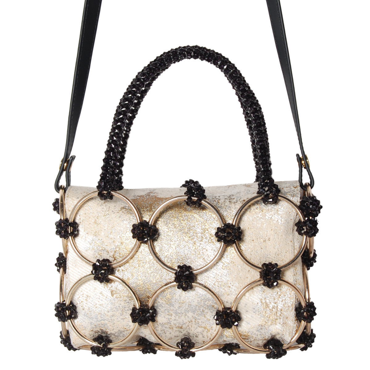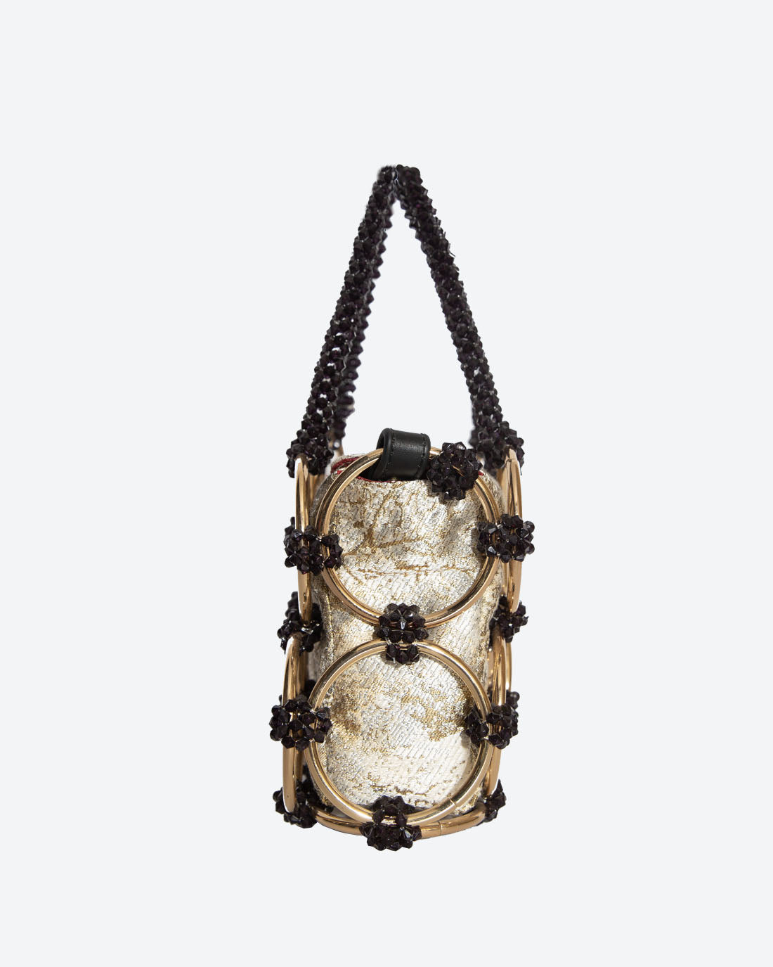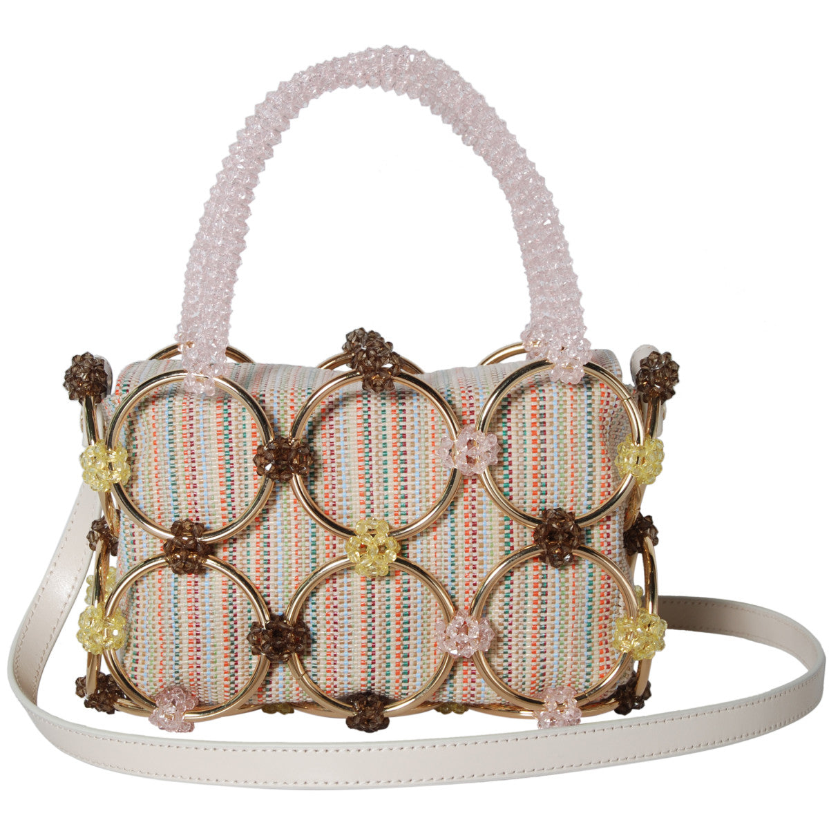 Inspired by a holiday in Capri, our Juliana is an exquisite hand-beaded bag inspired by vintage basket carrier in the 60s. Its detachable long handle ( made in genuine leather) allows you to wear it as a cross body. The lining is interchangeable- which means that we can customize the lining according to your taste and mood! Just let us know whether you order whether you prefer the distressed gold or the stripes or the floral lining.