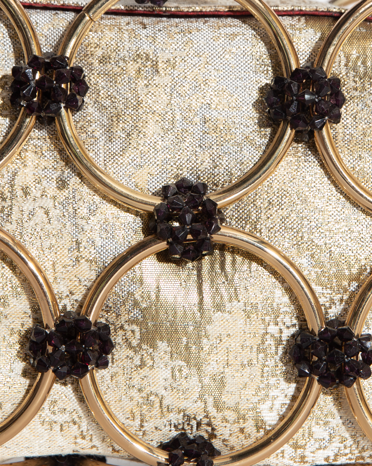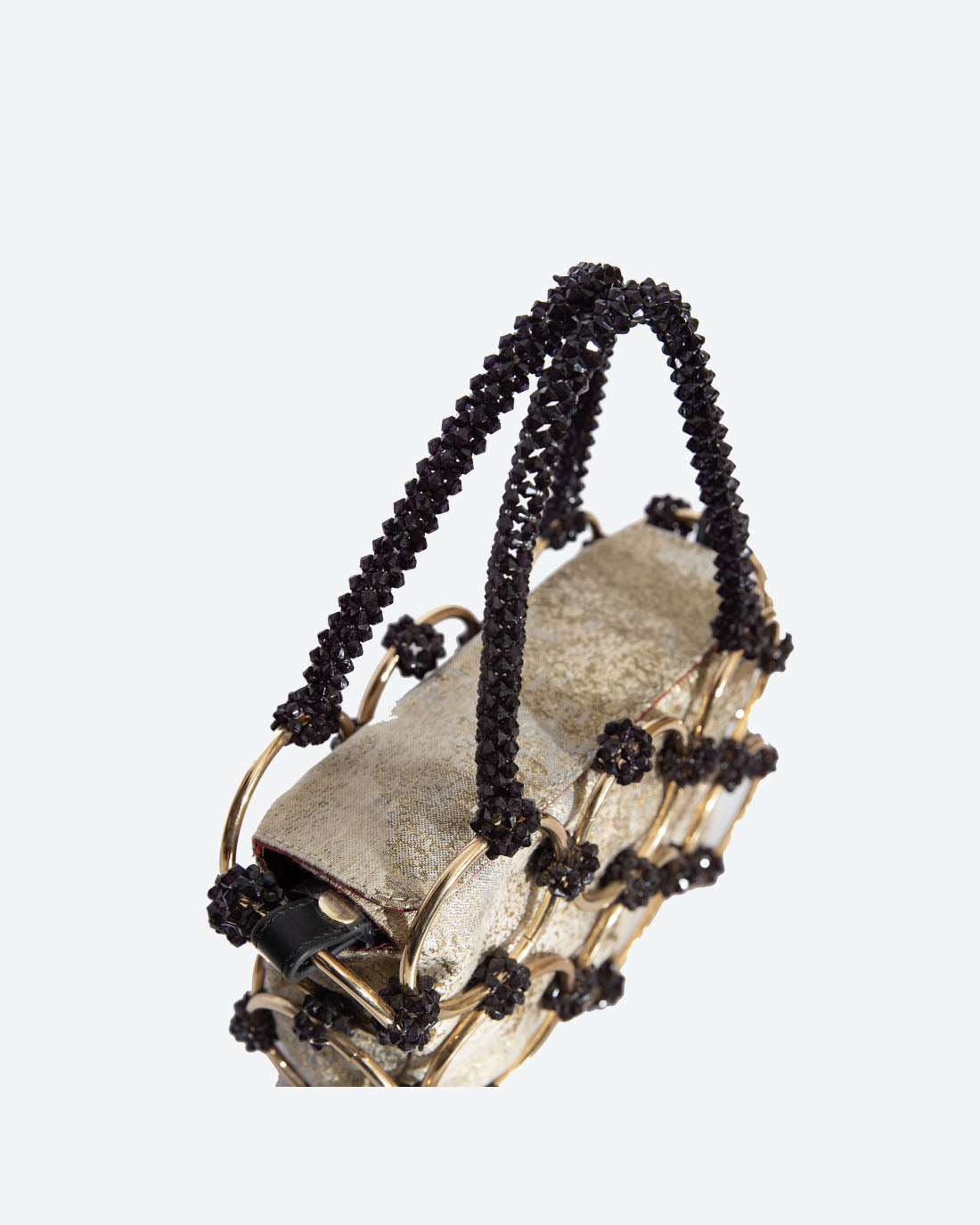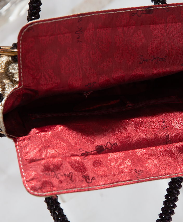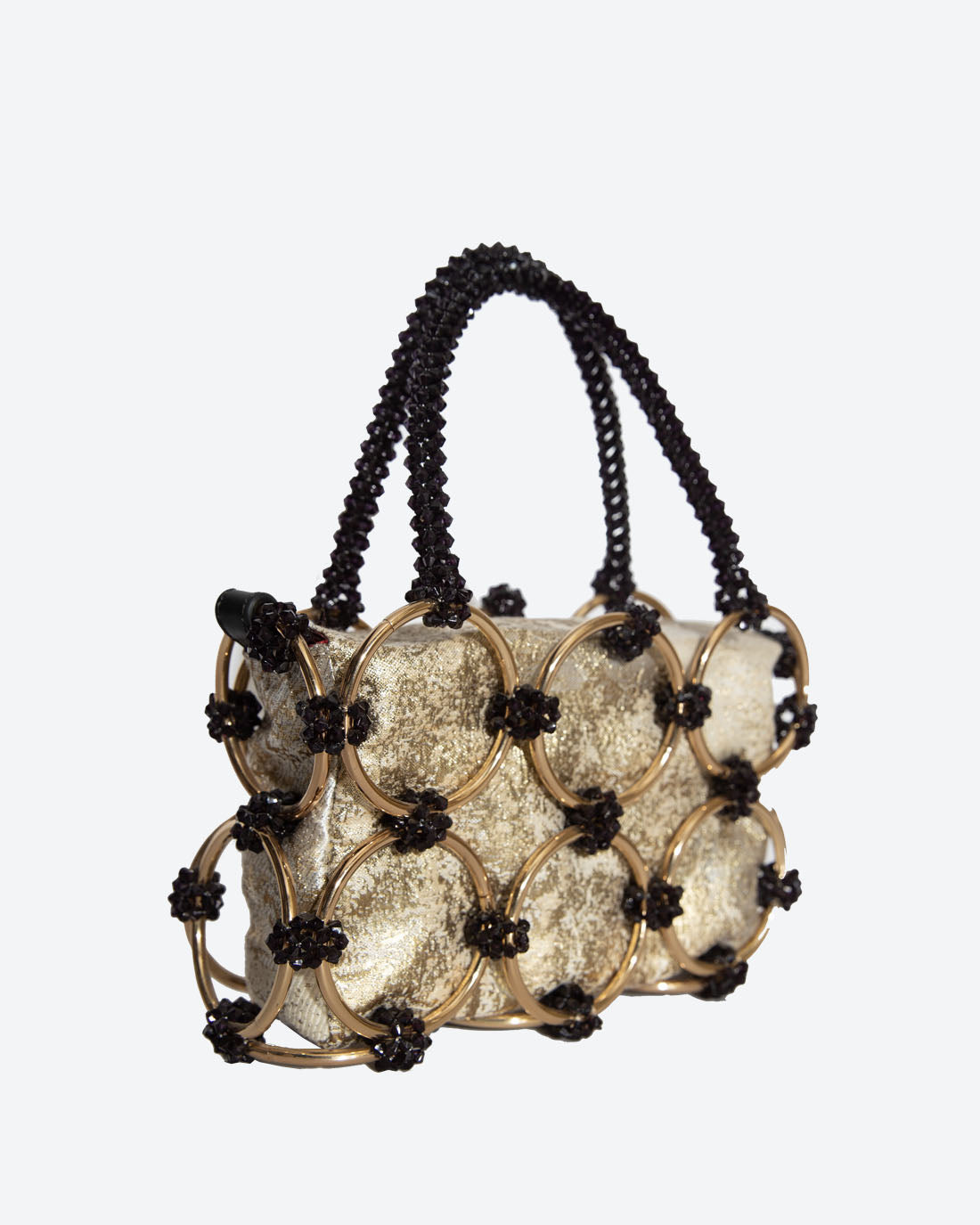 Inspired by a holiday in Capri, our Juliana is an exquisite hand-beaded bag inspired by vintage basket carrier in the 60s. Its detachable long handle ( made in genuine leather) allows you to wear it as a cross body. The lining is interchangeable- which means that we can customize the lining according to your taste and mood! Just let us know whether you order whether you prefer the distressed gold or the stripes or the floral lining.