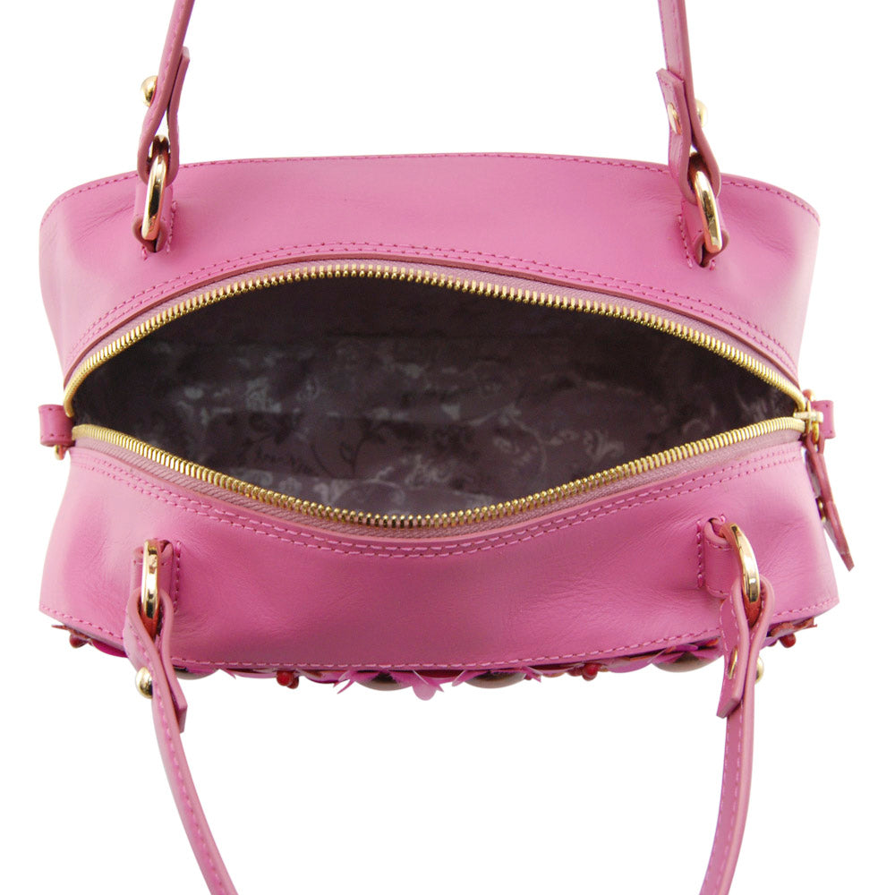 You will fall in love with our Petula in an instant! This exquisite leather bag is a true masterpiece, adorned with intricate embellishments that will leave you in awe. Handmade leather applique, beading, and sequin flowers create a stunning visual feast that is both cute and unique. With a back zipper pocket and a detachable handle, it's perfect for all your essentials. Petula is more than just a bag, it's a statement piece that effortlessly transitions from day to night. The top handle and detachable crossbody strap allow you to style it in both formal and casual ways. Crafted with genuine leather trims, this little wonder packs a punch though small in size. Don't miss the chance to own this work of art! Special offer on for teal and fuschia colours only.