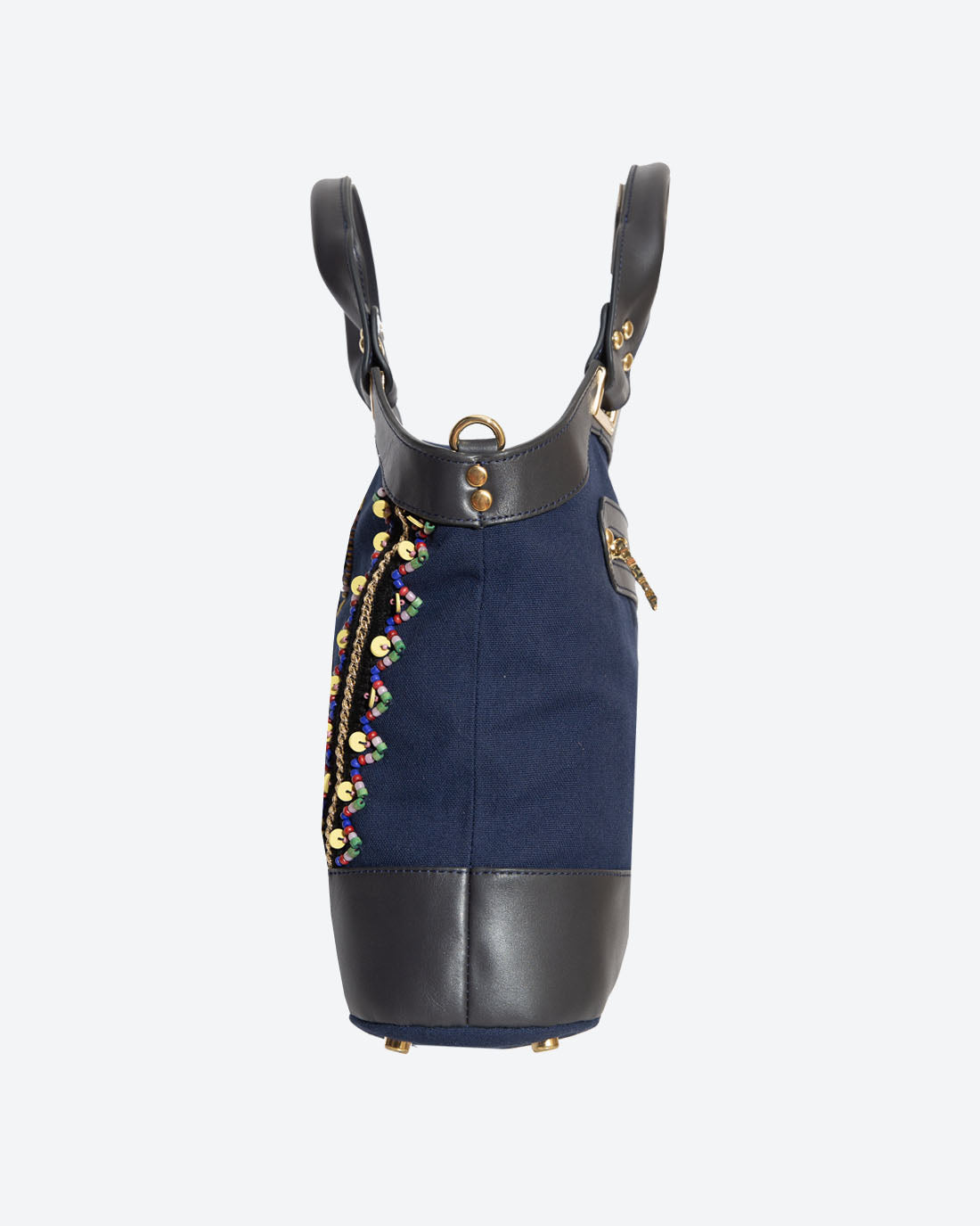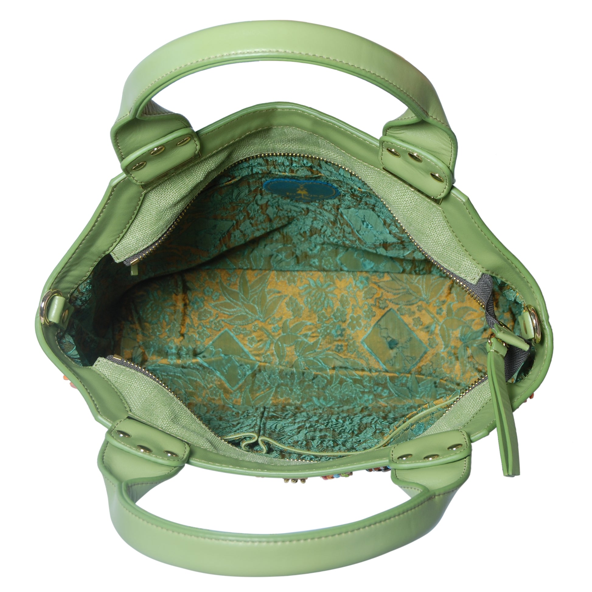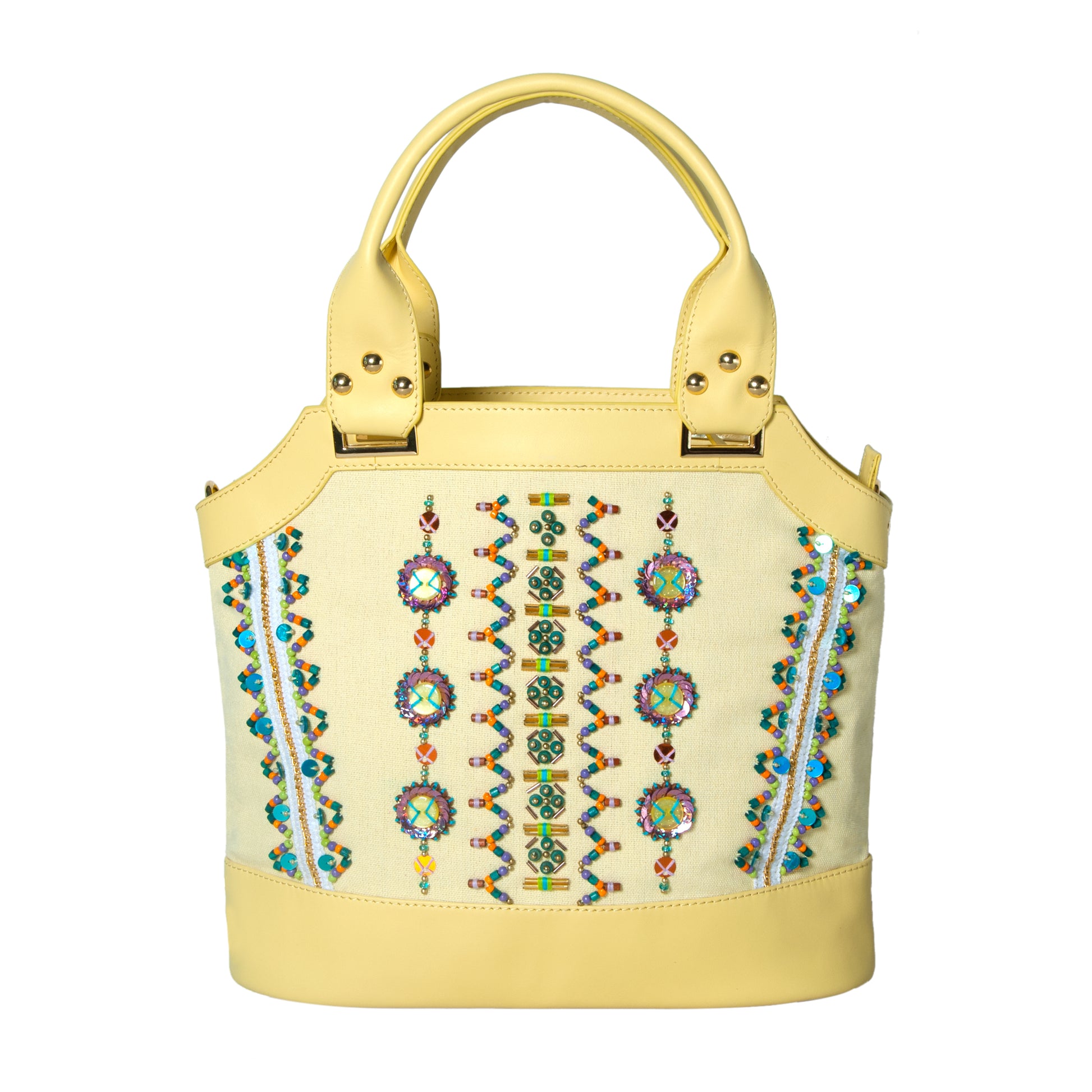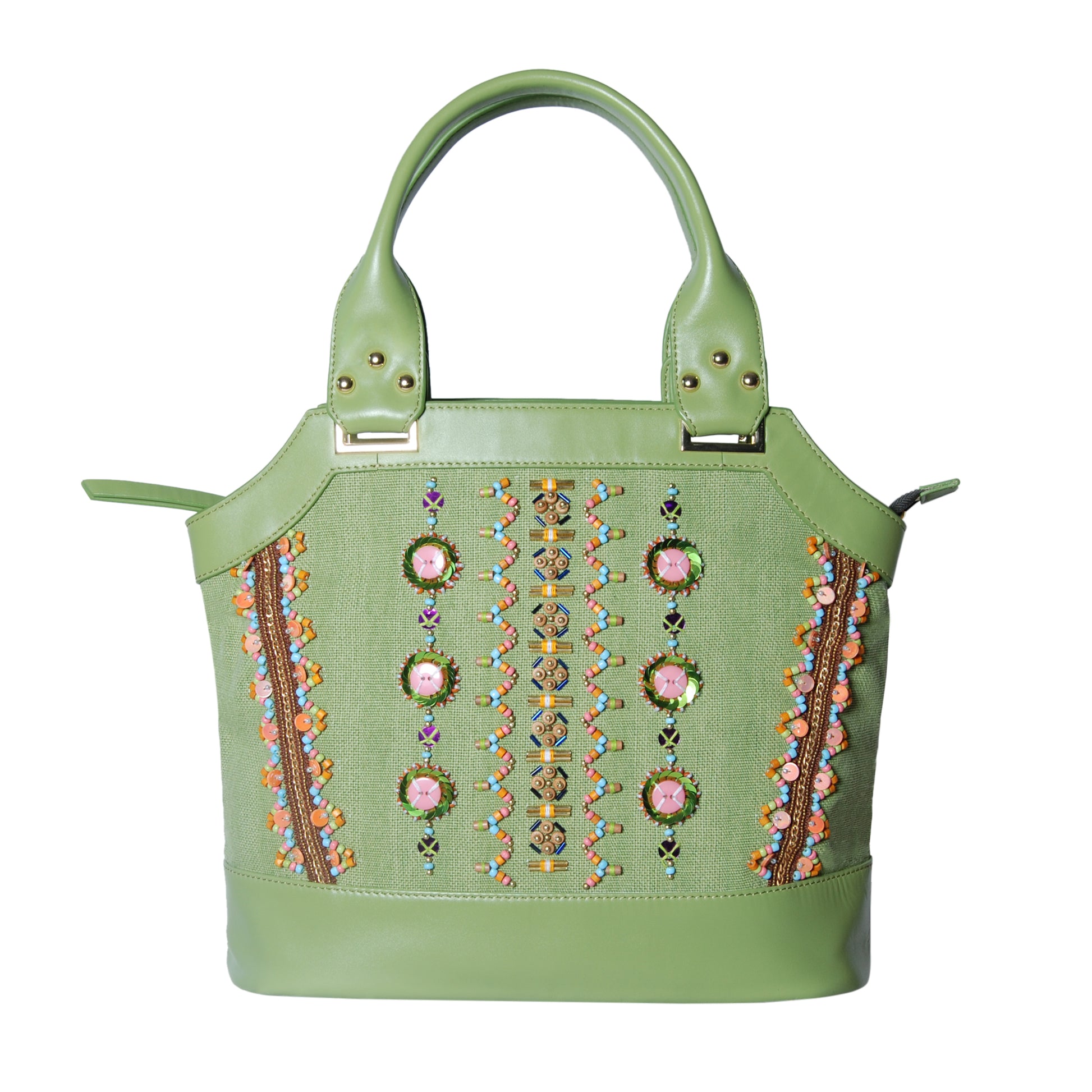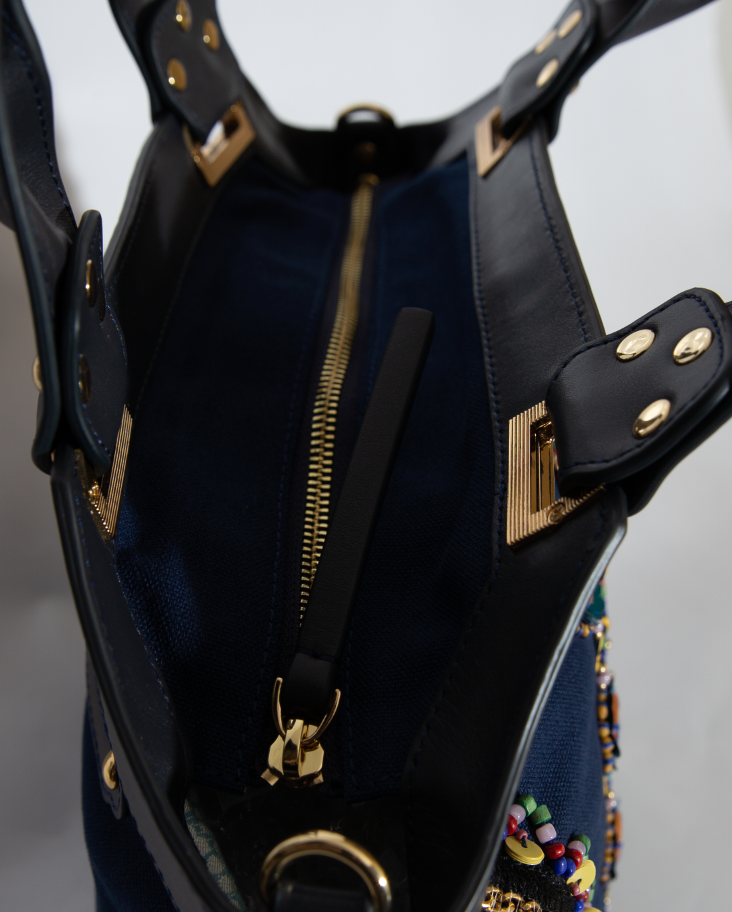 Inspired by the brilliant colours of Rajasthan, our meticulously hand-beaded Robbie Zipper Tote is the quintessential bag that provides instant glam to any casual outfits. Made in high quality canvas with genuine leather details, it is a great bag to move from work to drinks, and can hold a large tablet. Comes with a detachable crossbody handle. Measurement (cm): 37.5W x 30H x11.5D. Handle Drop (cm): 15.4 and 135cm for long handle.