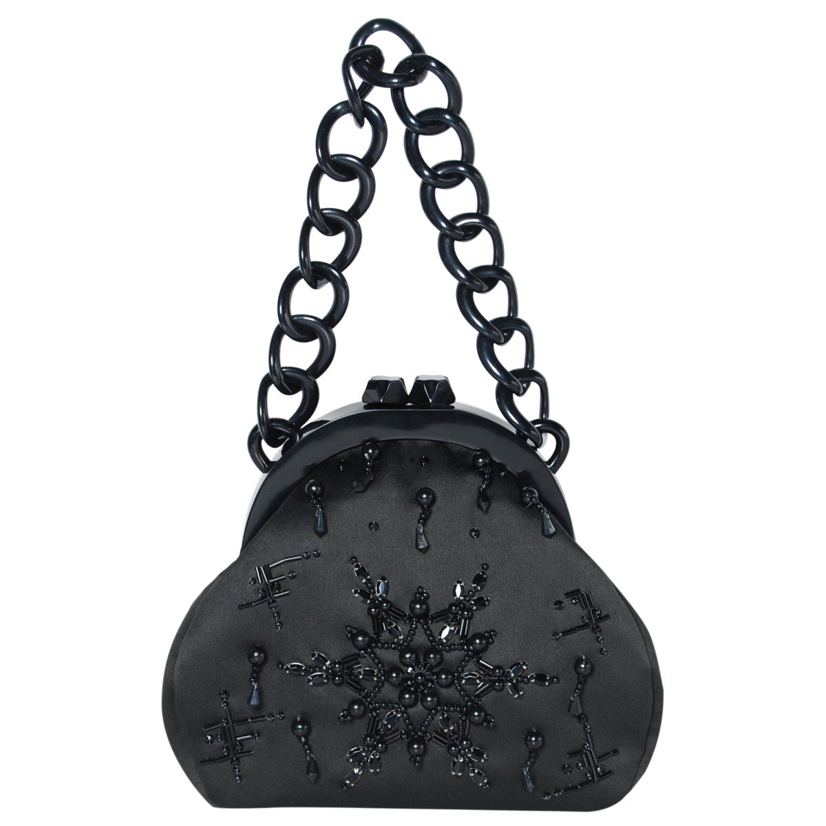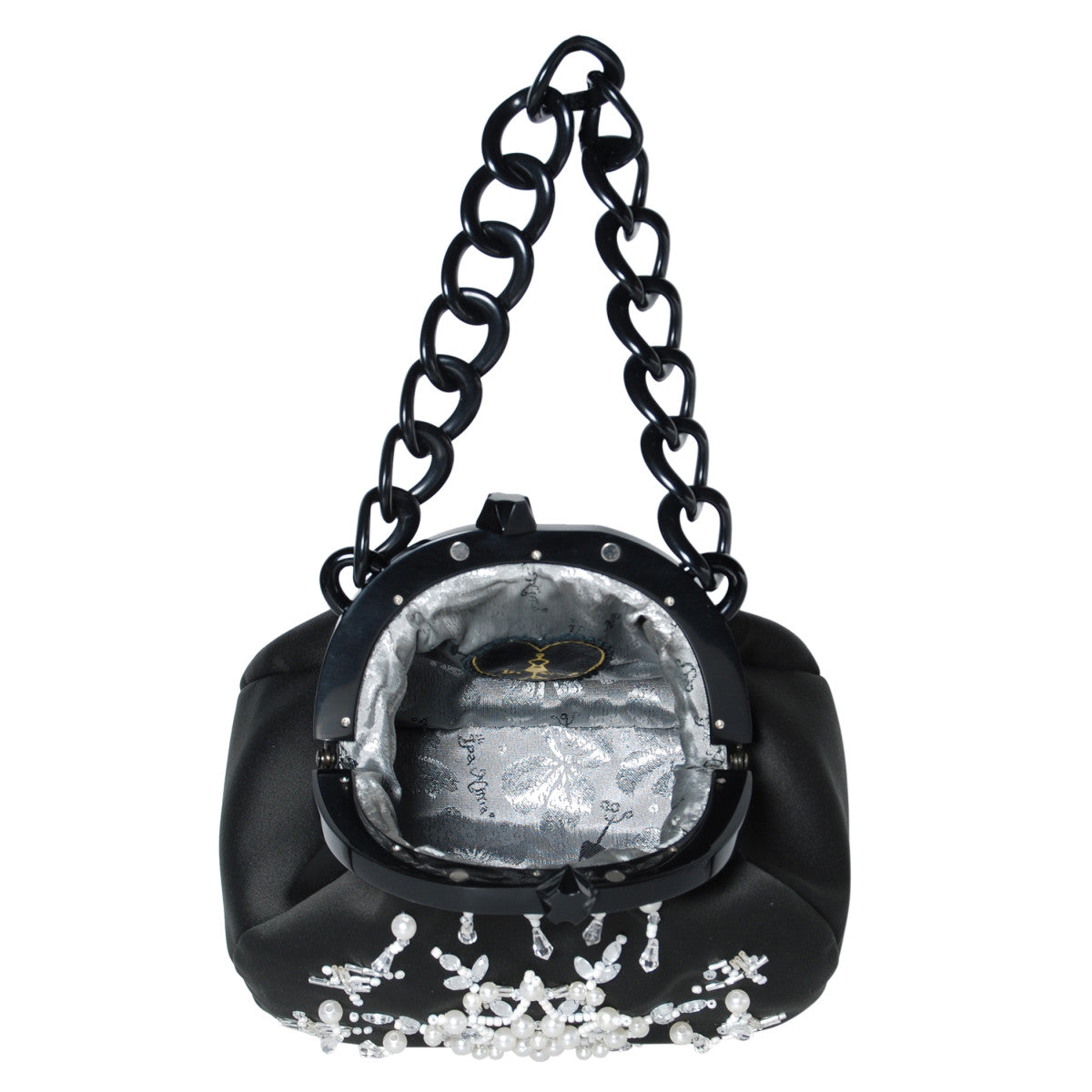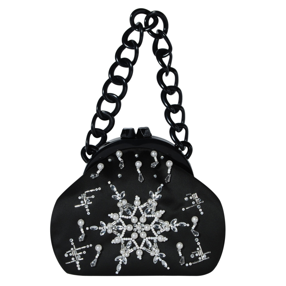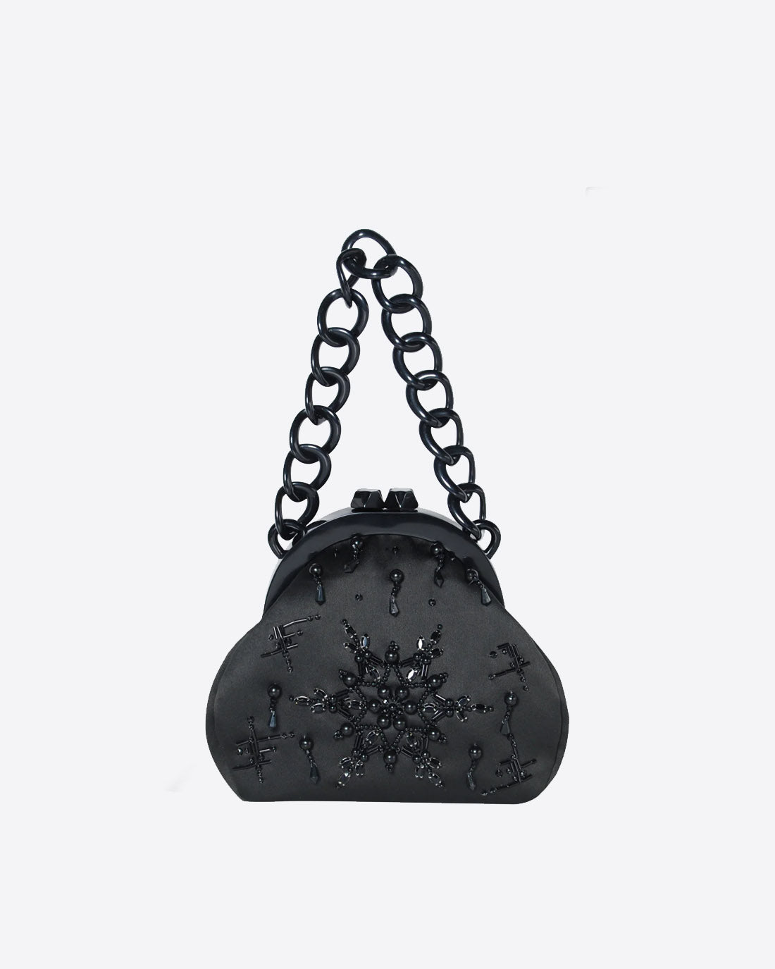 Make a stellar entrance at your next party with our Stellar Party Bag! Crafted from luxurious satin and featuring an elegant acrylic handle, this bag is the perfect accessory to complete your glamorous ensemble. The hand beading pattern in white adds a classic touch, while the black option offers a more subdued look. With its acrylic clasp and chain handle, this bag not only looks fabulous but also allows you to keep your hands free for holding your favorite cocktail. Get ready to turn heads and make a stylish statement with our cute-shaped, elegant Satin Party Bag.