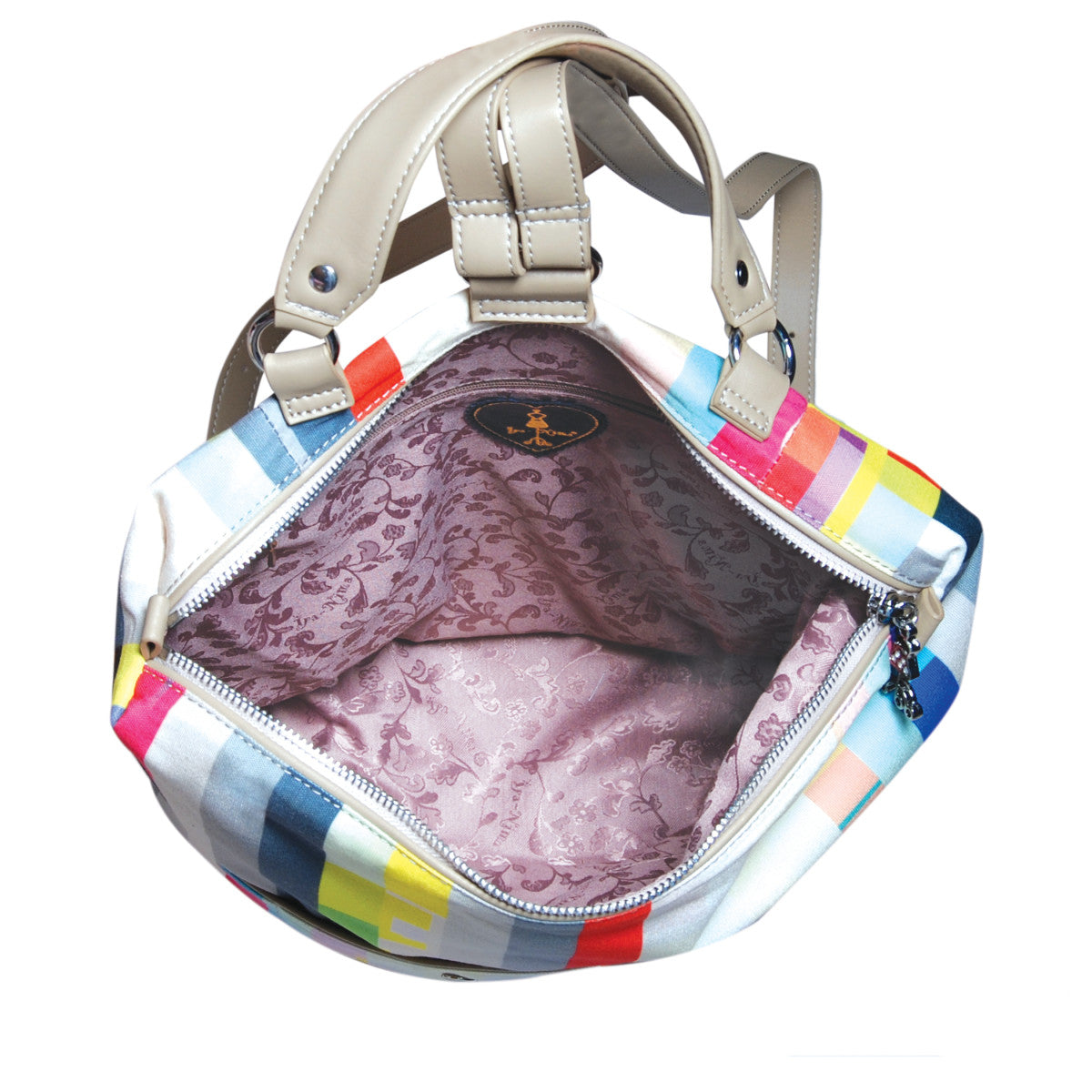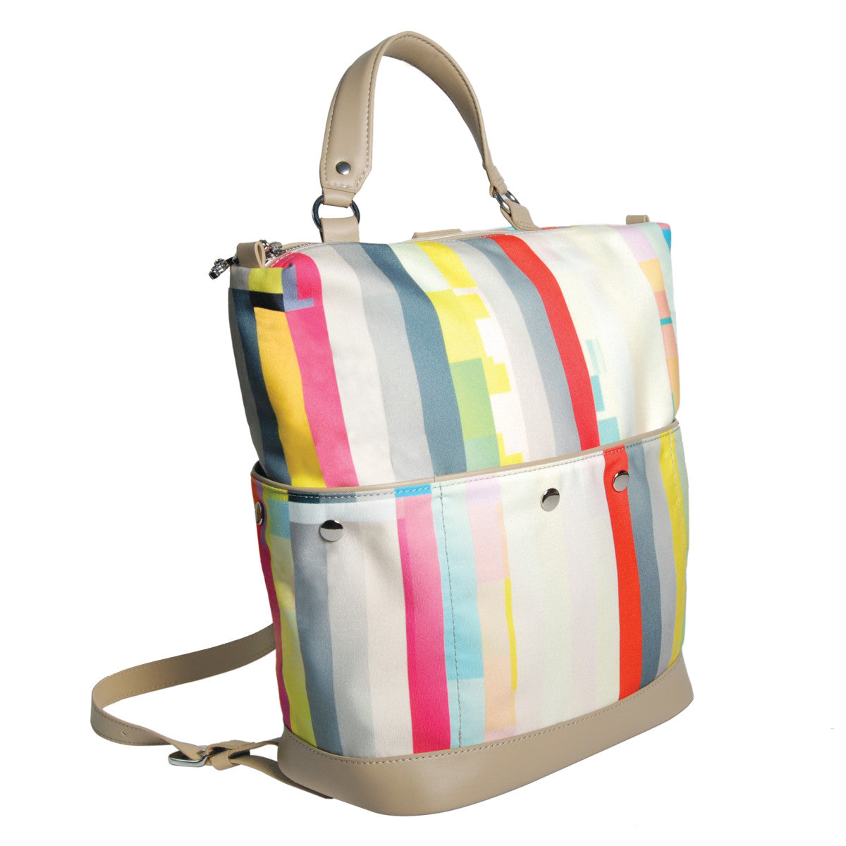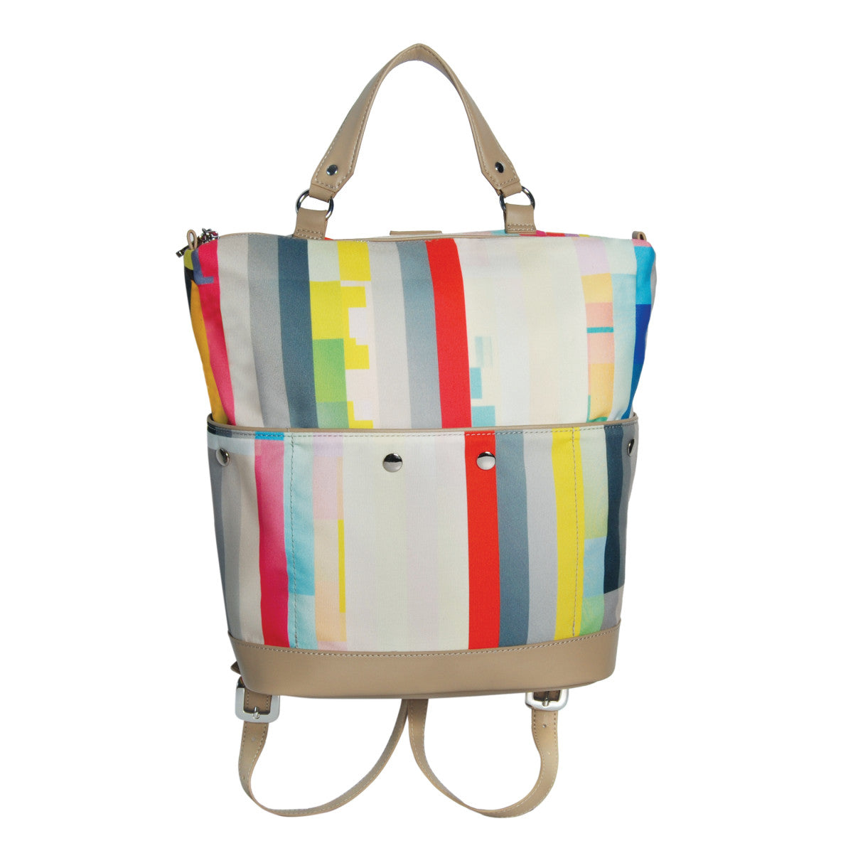 Balo Rainbow của chúng tôi nhẹ, bền và tiện dụng. Vải cầu vồng được xử lý chống thấm nước nhẹ và đi kèm với áo có khóa kéo. 3 túi bên ngoài cho phép dễ dàng lấy điện thoại, chìa khóa và sổ ghi chú. Mặt sau cũng có một túi dây kéo để đựng tiền và thẻ tín dụng.