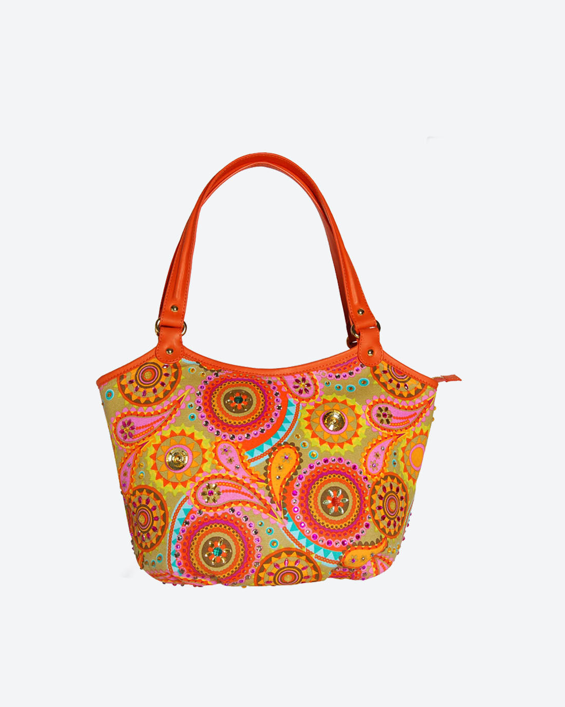 Túi bucket Paisley là một tủ quần áo đầy màu sắc nhất định phải có! Các tông màu rực rỡ của mùa hè gồm cam, đỏ, hồng và xanh lam cực kỳ nhiệt đới và vui nhộn, đồng thời các nút và hạt khâu tay tạo cho nó độ lấp lánh vừa đủ để khiến nó lấp lánh dưới ánh mặt trời. Tay cầm và các chi tiết trang trí được làm bằng da thật nên không bị chảy khi gặp nhiệt (không dính tay)!