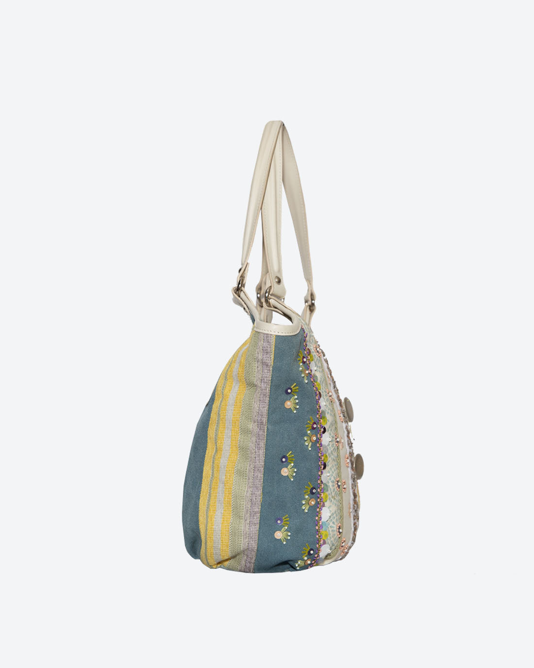Bucket mảng vá Cassy của chúng tôi là một trong những vật phẩm đặc trưng của IPA-NIMA. Được làm thủ công đẹp mắt với sự chắp vá của jacquard và vải bạt, đồng thời được tô điểm bằng các nút và chi tiết thủ công, nó độc đáo, tiện dụng và bắt mắt. Tính năng cải tiến của mặt trên có khóa kéo đảm bảo rằng đồ đạc của bạn được an toàn và túi có khóa kéo phía sau giúp bạn dễ dàng lấy điện thoại và chìa khóa. Một trong những hình dạng bán chạy nhất trong phạm vi của chúng tôi và một số khách hàng của chúng tôi có các phiên bản khác nhau của nó- bạn chắc chắn cũng nên có một cái!