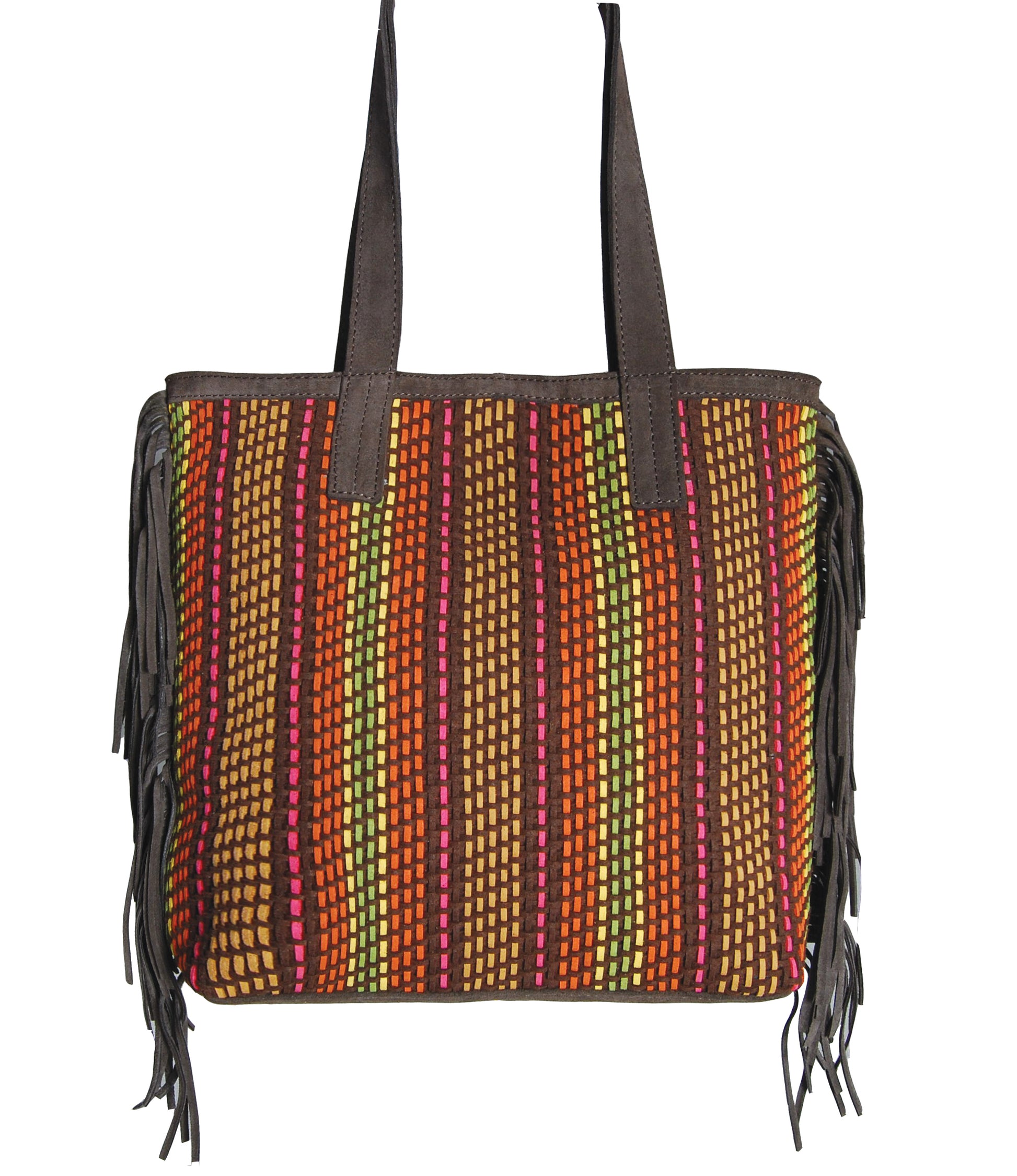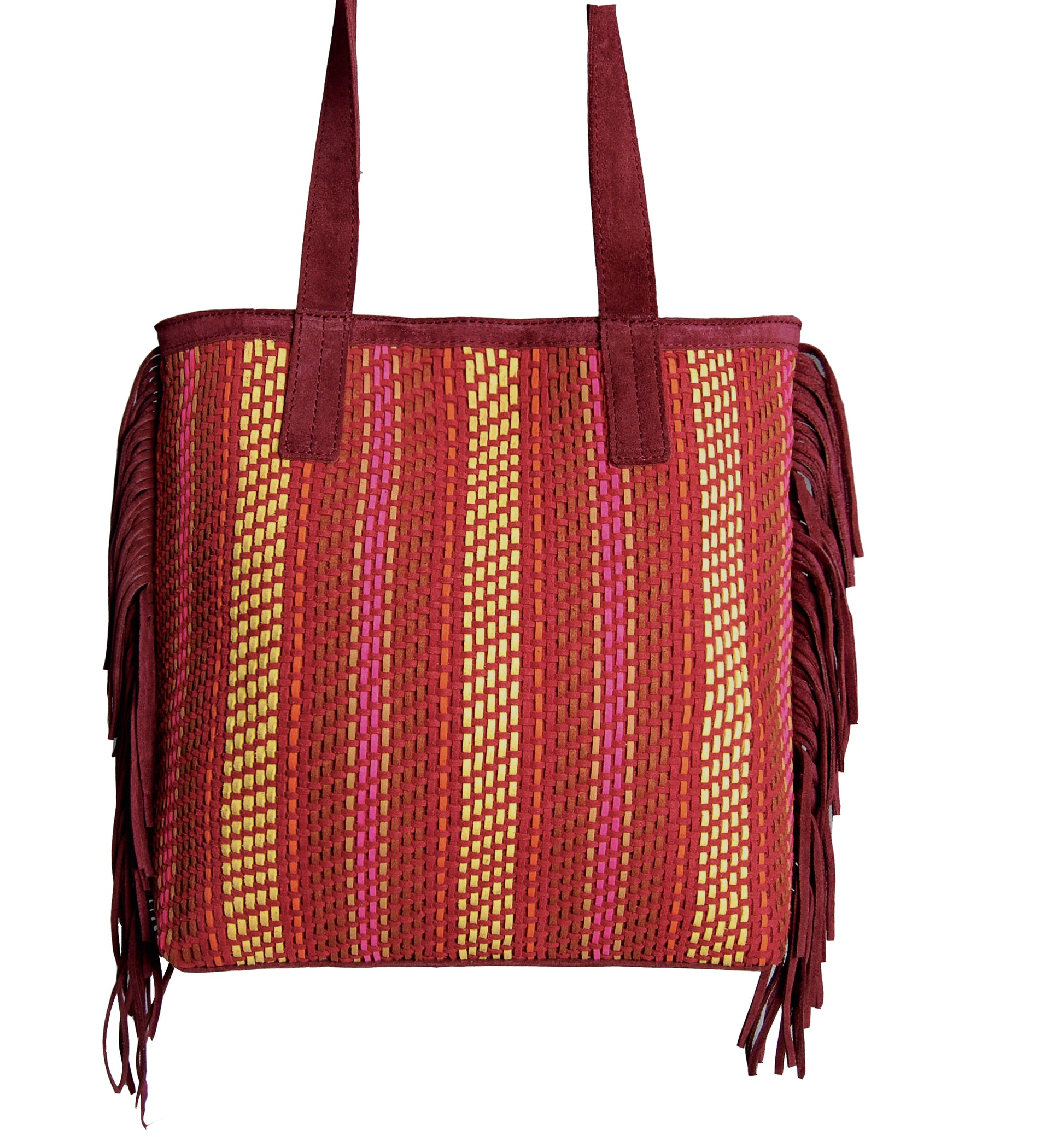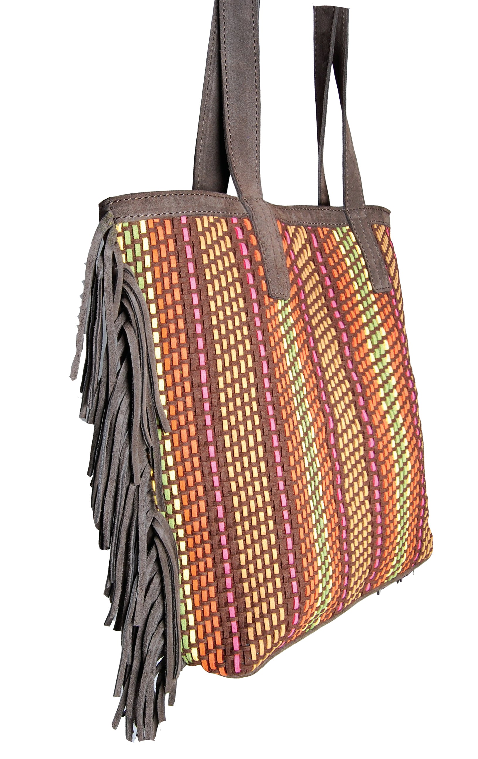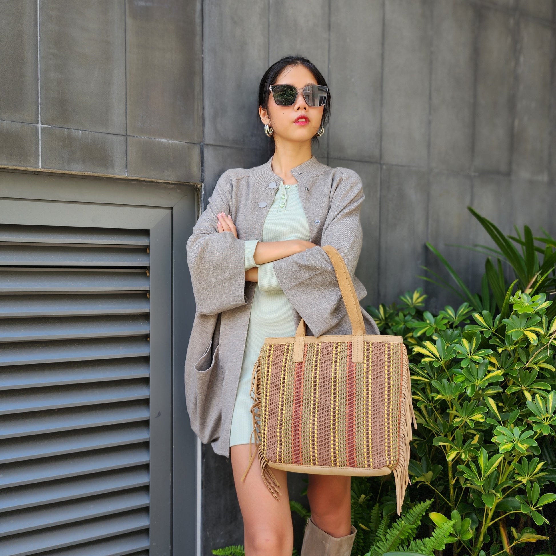 Một chiếc túi sành điệu cho mùa xuân và mùa thu. Cheryl Tote của chúng tôi được bện thủ công bằng dây da lộn giả và được làm bằng da lộn thật. Các đường viền thêm chuyển động và tông màu nổi bật của nó hoạt động tốt với tủ quần áo màu đen và nâu. Vừa vặn với chiếc lap top nhẹ như I Mac Air với túi sau lớn đựng chìa khóa và son môi, có túi khóa kéo bên trong để giữ an toàn cho điện thoại và ví của bạn. Funky, chức năng và sắc sảo.