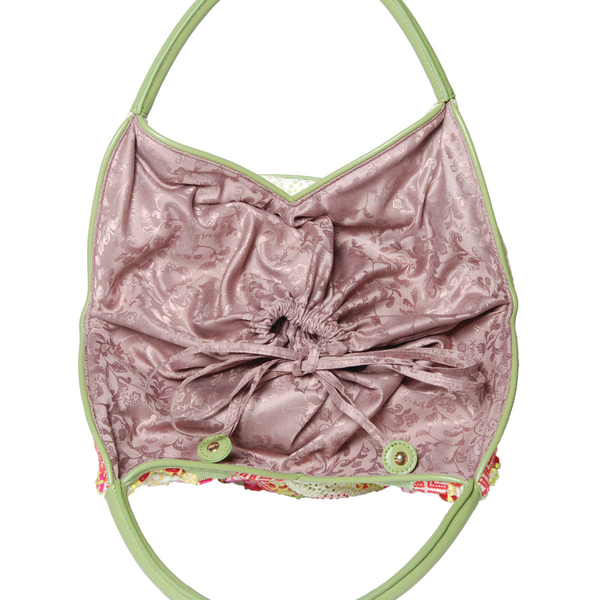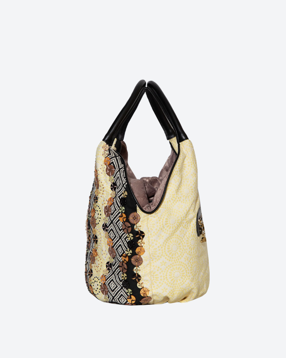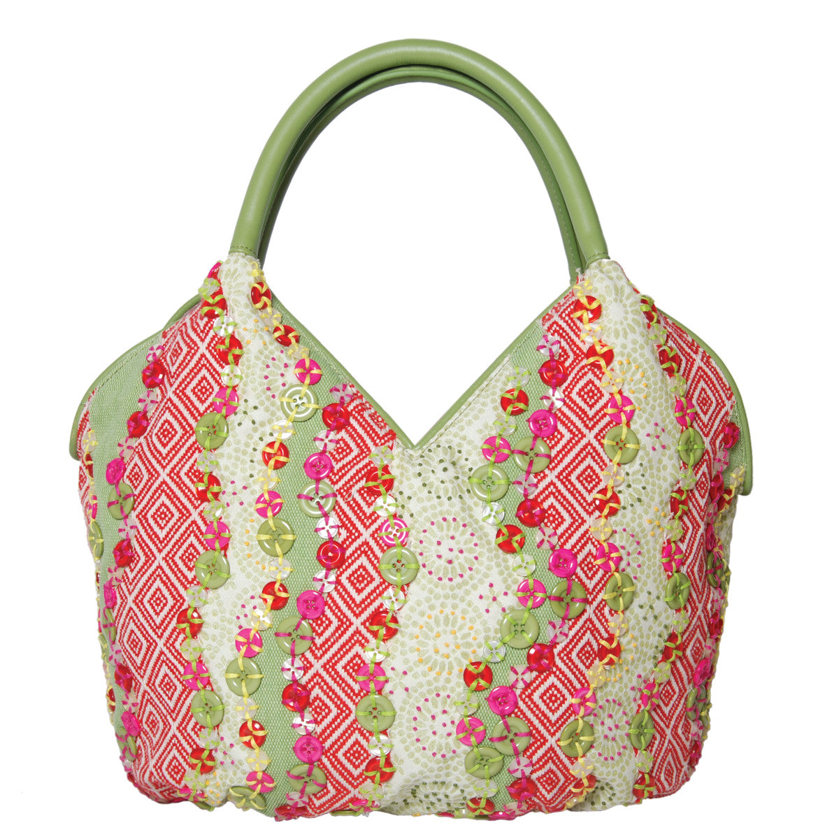 Chúng tôi nổi tiếng với sự chỉnh trang của mình và chiếc bucket này có tất cả. Điều làm cho nó thú vị là các nút sáng bóng tương phản với vải jacquard. Mỗi nút được khâu bằng tay bằng chỉ cotton và thêu tay. Tay cầm và các chi tiết trang trí đều được làm bằng da thật, hoàn chỉnh với túi trượt ở phía sau để đựng tất cả các vật có giá trị của bạn.