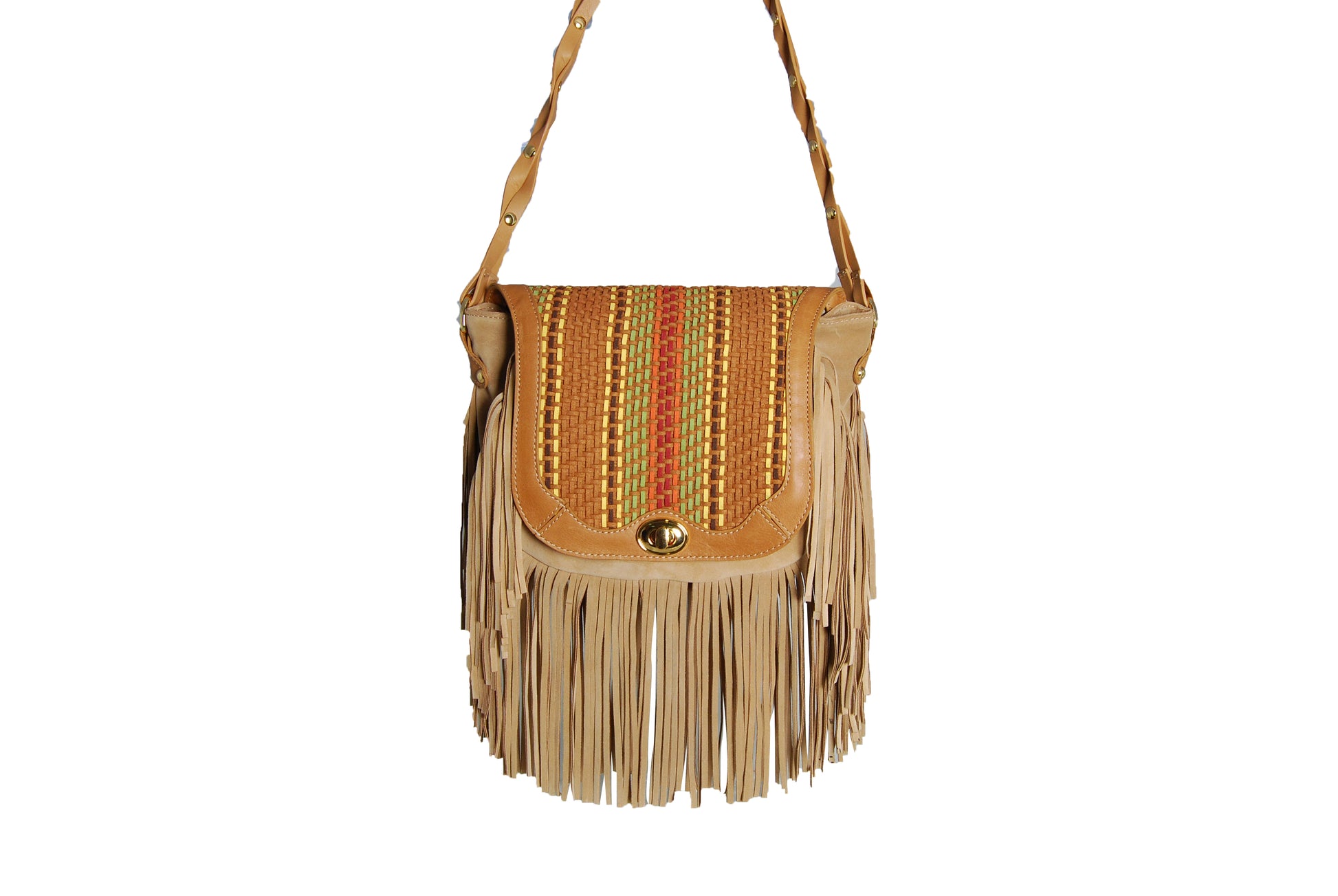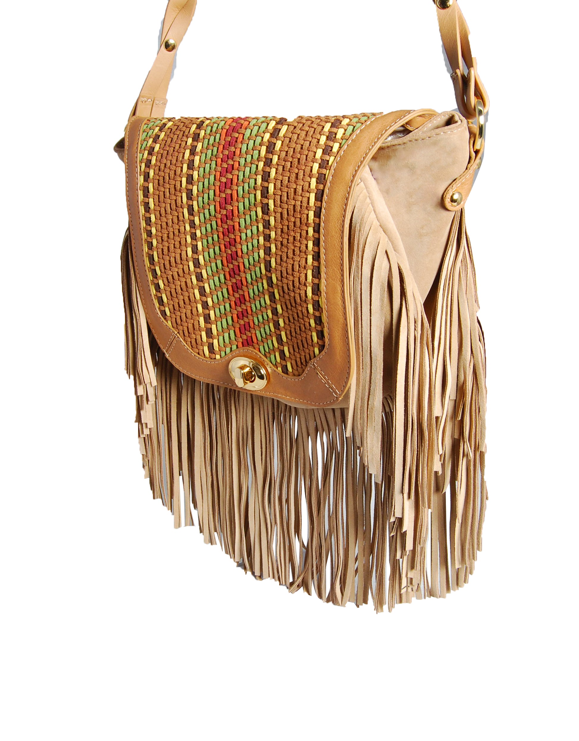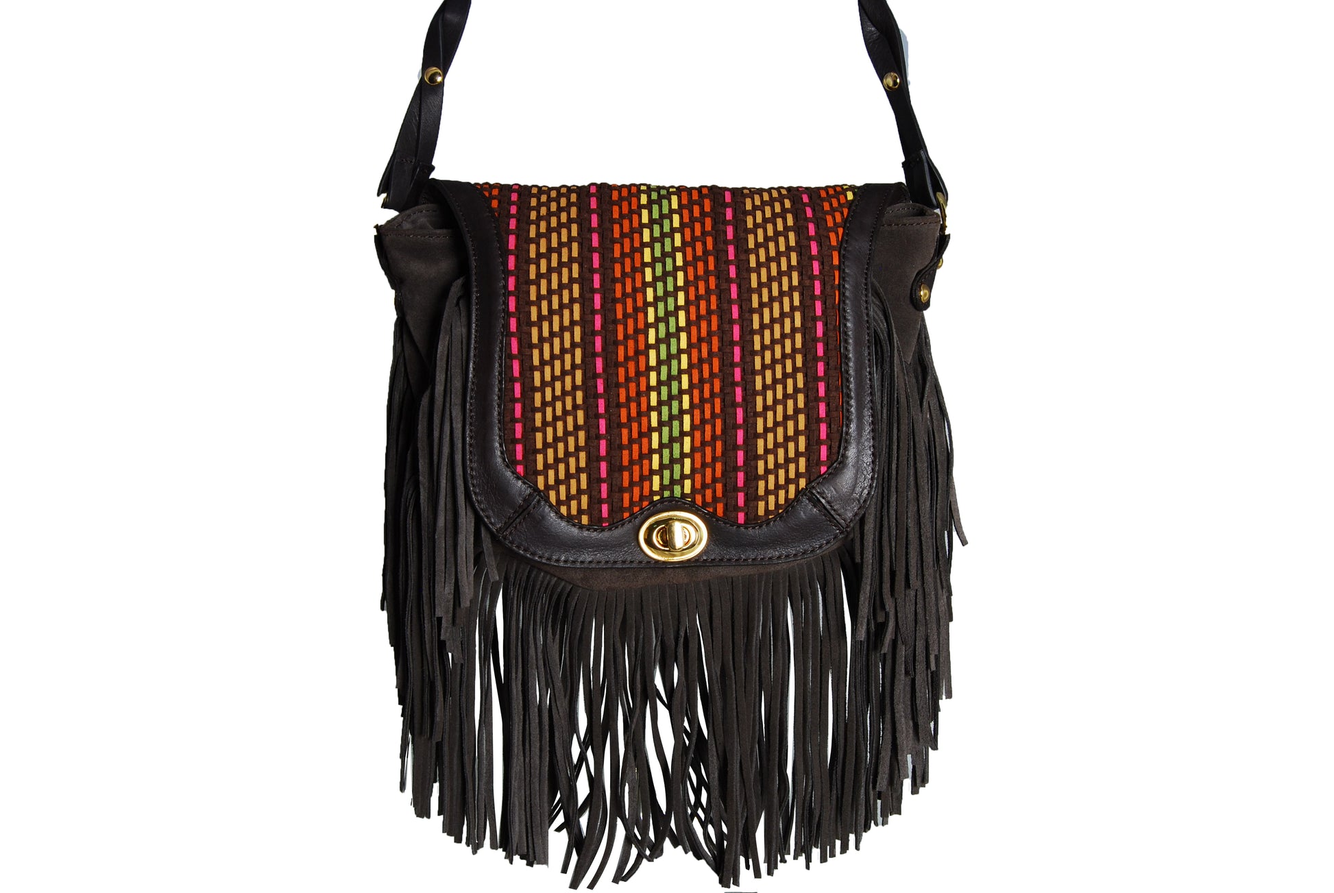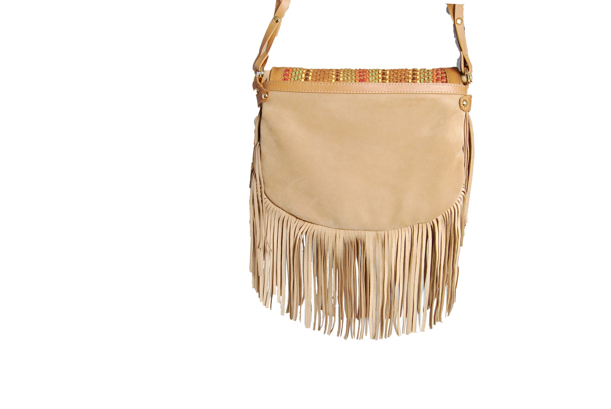 Our Maddie Hand-Braided Suede Satchel is a vibrant, handmade crossbody bag that exudes bohemian rock and roll vibes. Crafted with supple suede leather, this hand-braided front panels and handle add a touch of artistry. Complete with fringes, inner sections, and pockets, this hand-braided suede crossbody bag is perfect for all your Bohemian essentials. Let your style shine with this unique and feminine accessory.